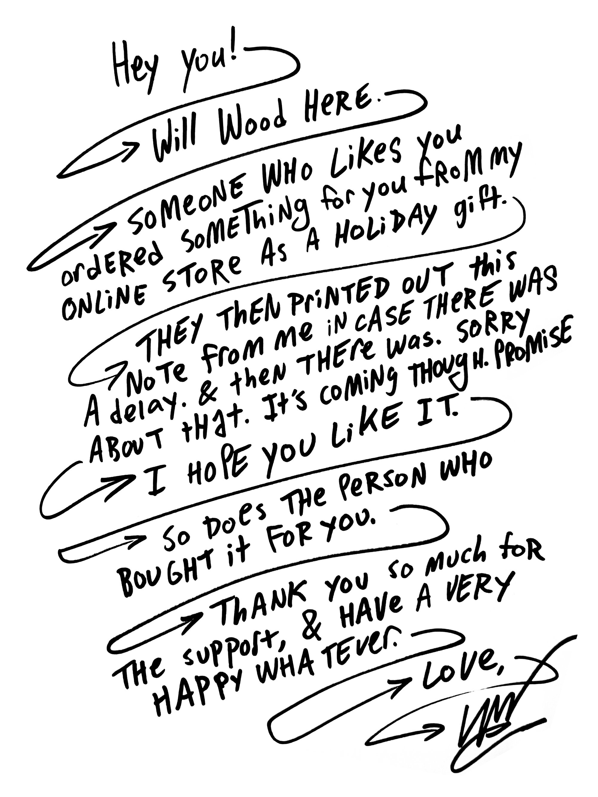 Looking for a gift for a loved one on a special occasion? Doing it a little last minute or otherwise concerned about the item's arrival date? Just want to make things a little more fun? Whether it's a birthday or a holiday, lots of folks have had great success by printing one of these out handwritten notes from WW and putting it in a card and/or including it with a gift voucher! It's also a good way to put a little extra pop of fun in with the package when it arrives! You can even give it on its own to let your loved one know a gift is on its way!